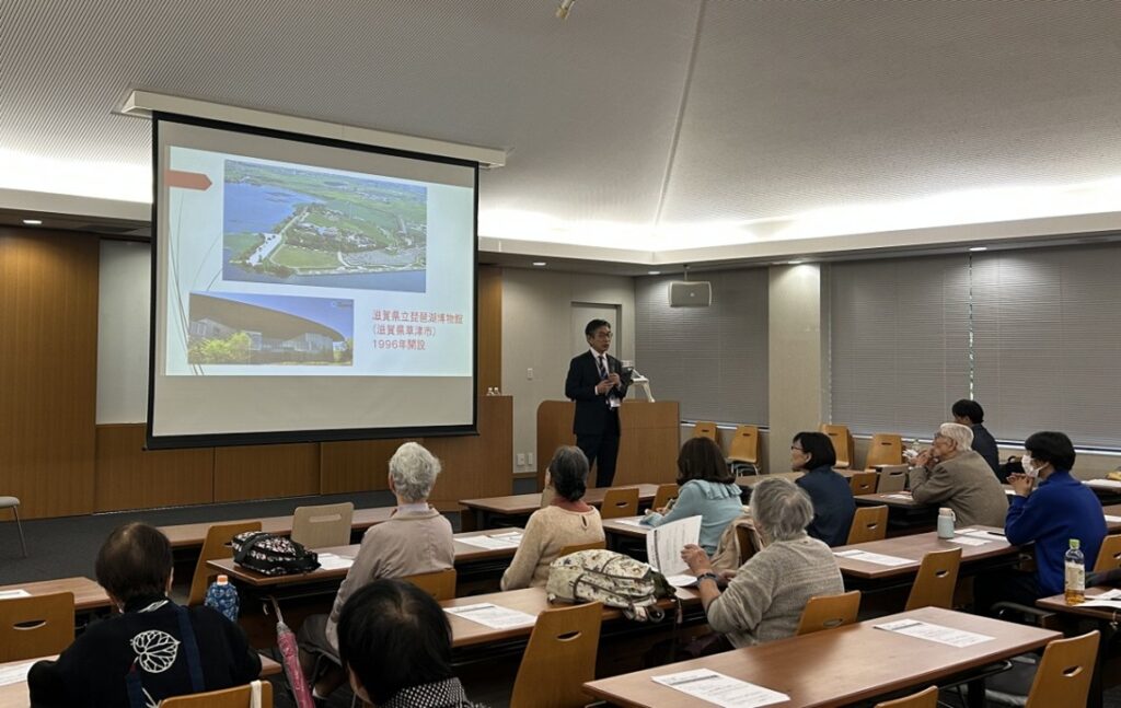 二部では、京都文化博物館学芸担当係長山崎頼人先生により、現在開催中の特別展「世界遺産 縄文」から遮光器土偶などたくさんの画像や動画を用いて、縄文文化についてご考察いただきました。