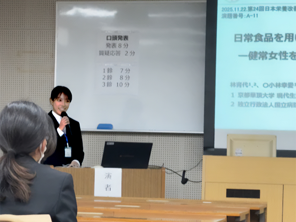 食物栄養学科3年の小林幸愛さんが第24回日本栄養改善学会近畿支部会学術総会で研究成果を発表しました!