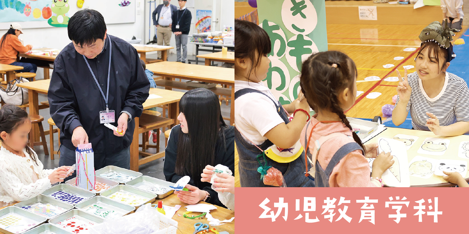 作って遊ぶ活動を通して子どもたちと関わり、幼児教育学科の学びを体験できます。